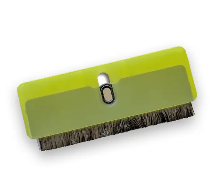 Hiilikuituharja, joka poistaa vaivattomasti pölyn lian ja pienet hiukkaset vinyylilevyjen urista. Huolellisesti suunniteltu sisään vedettävällä harjalla ja pyöristetyillä kulmilla. Pyöristetyt kulmat estävät levyjen vahingoittumisen vahingossa. Erityisen kätevä, kun haluat ottaa harjan mukaasi, sillä harja on hyvin suojattuja ja kompakti.